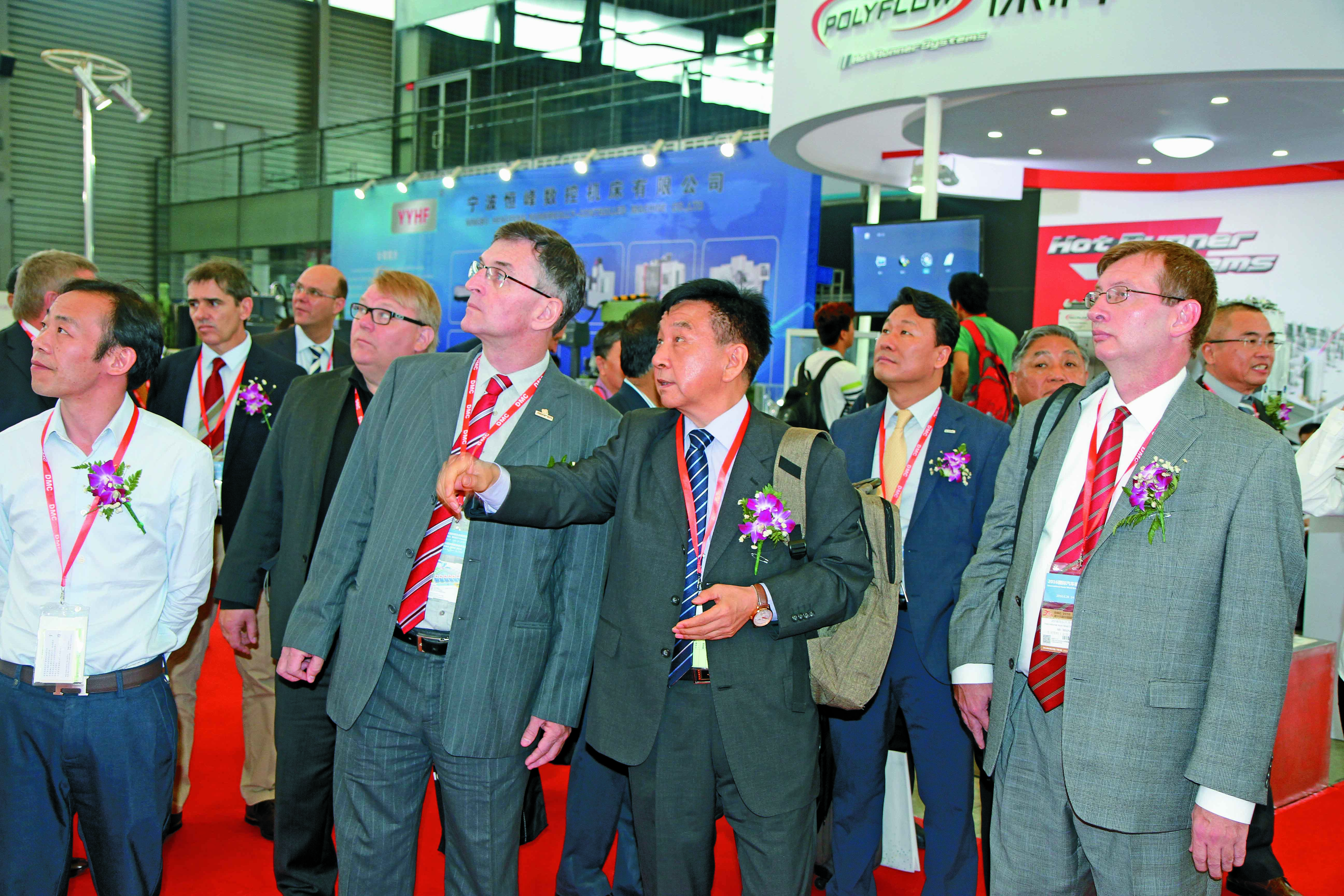 圖為開幕首日中國(guó)模具工業(yè)協(xié)會(huì)常務(wù)副會(huì)長(zhǎng)兼秘書長(zhǎng)武兵書先生與來自全球各國(guó)的模協(xié)負(fù)責(zé)人及重要嘉賓組成的貴賓團(tuán)正在參觀展會(huì)。