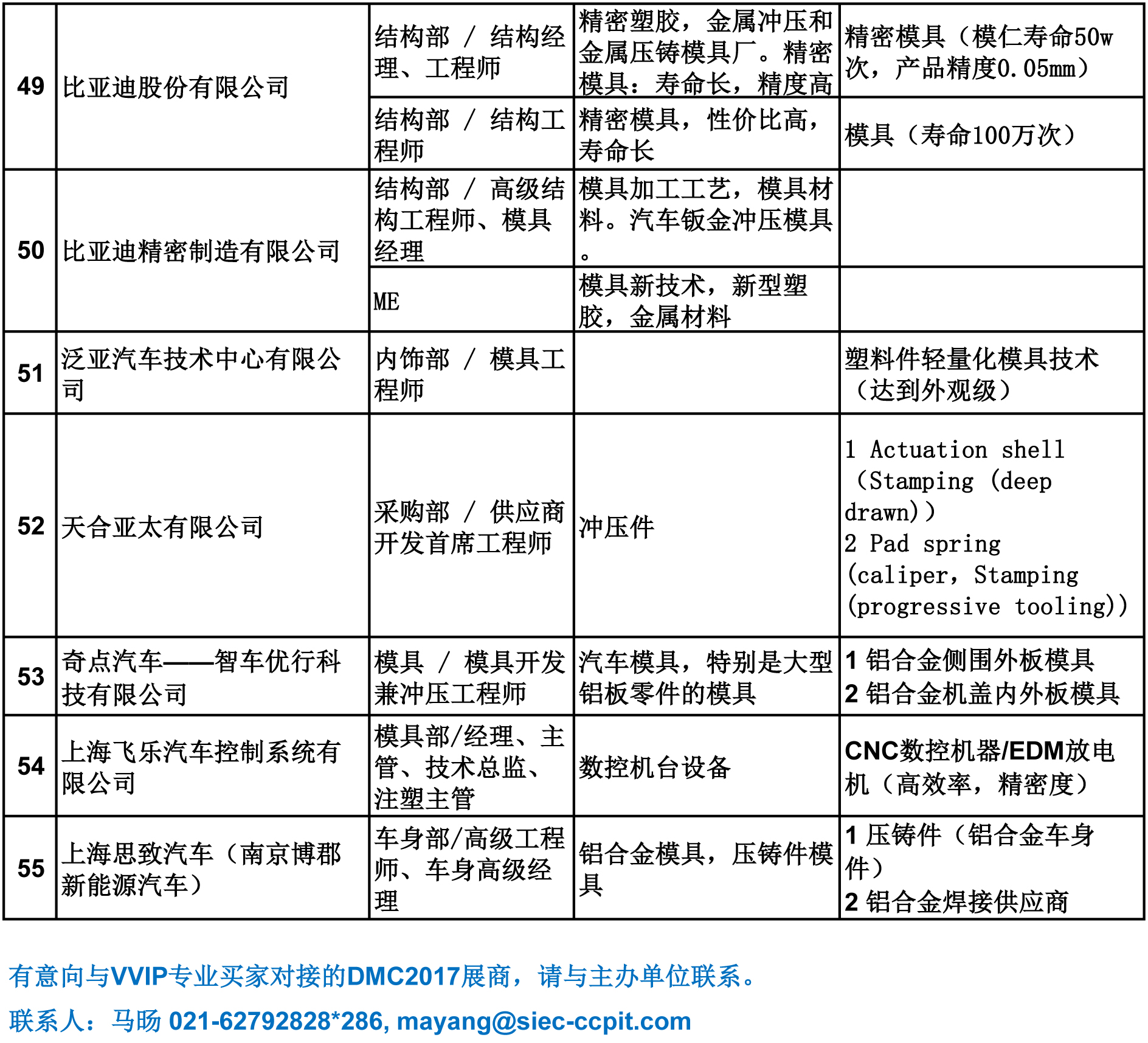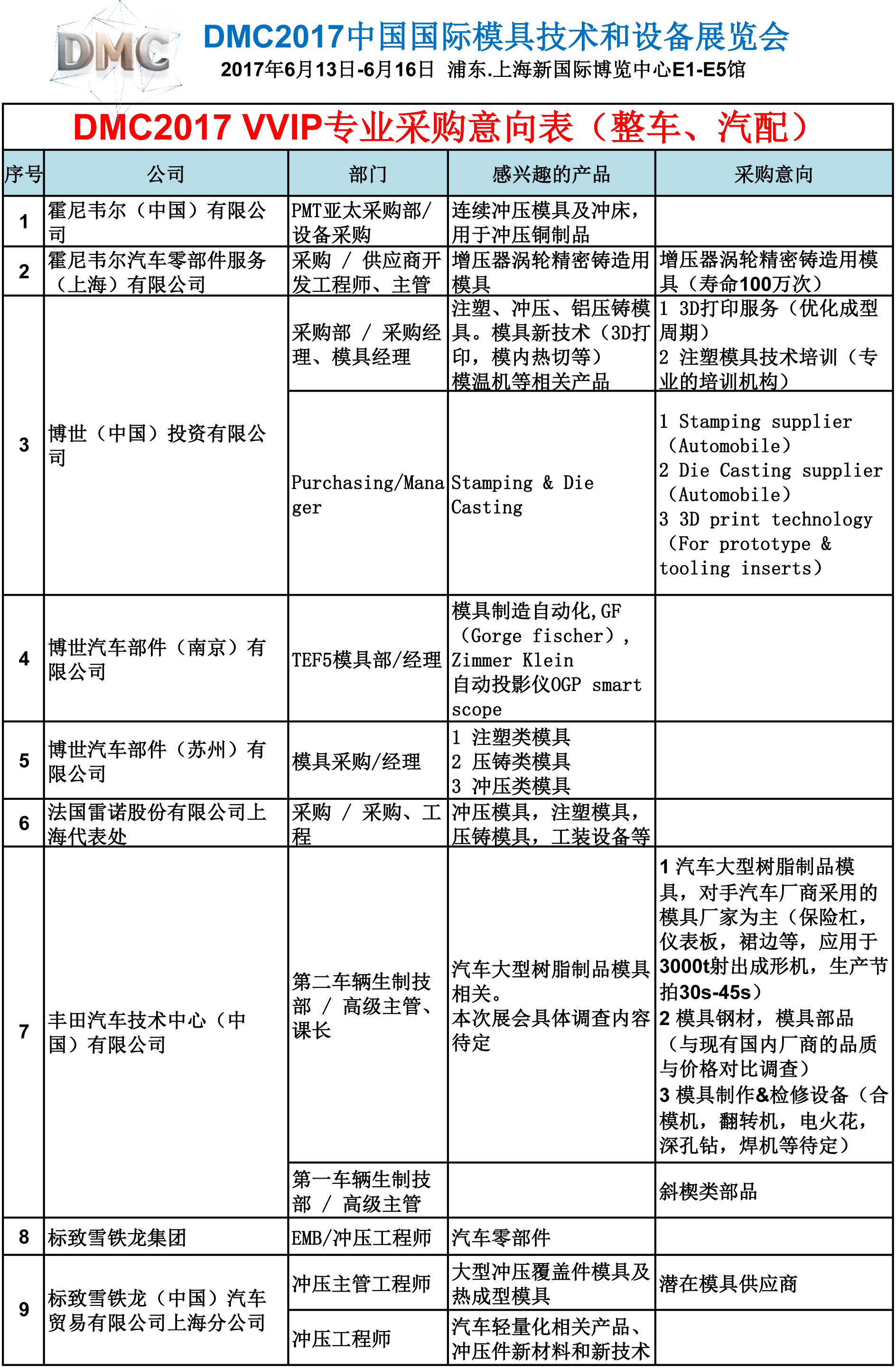 DMC2017 VVIP專業(yè)采購意向表(整車、汽配)