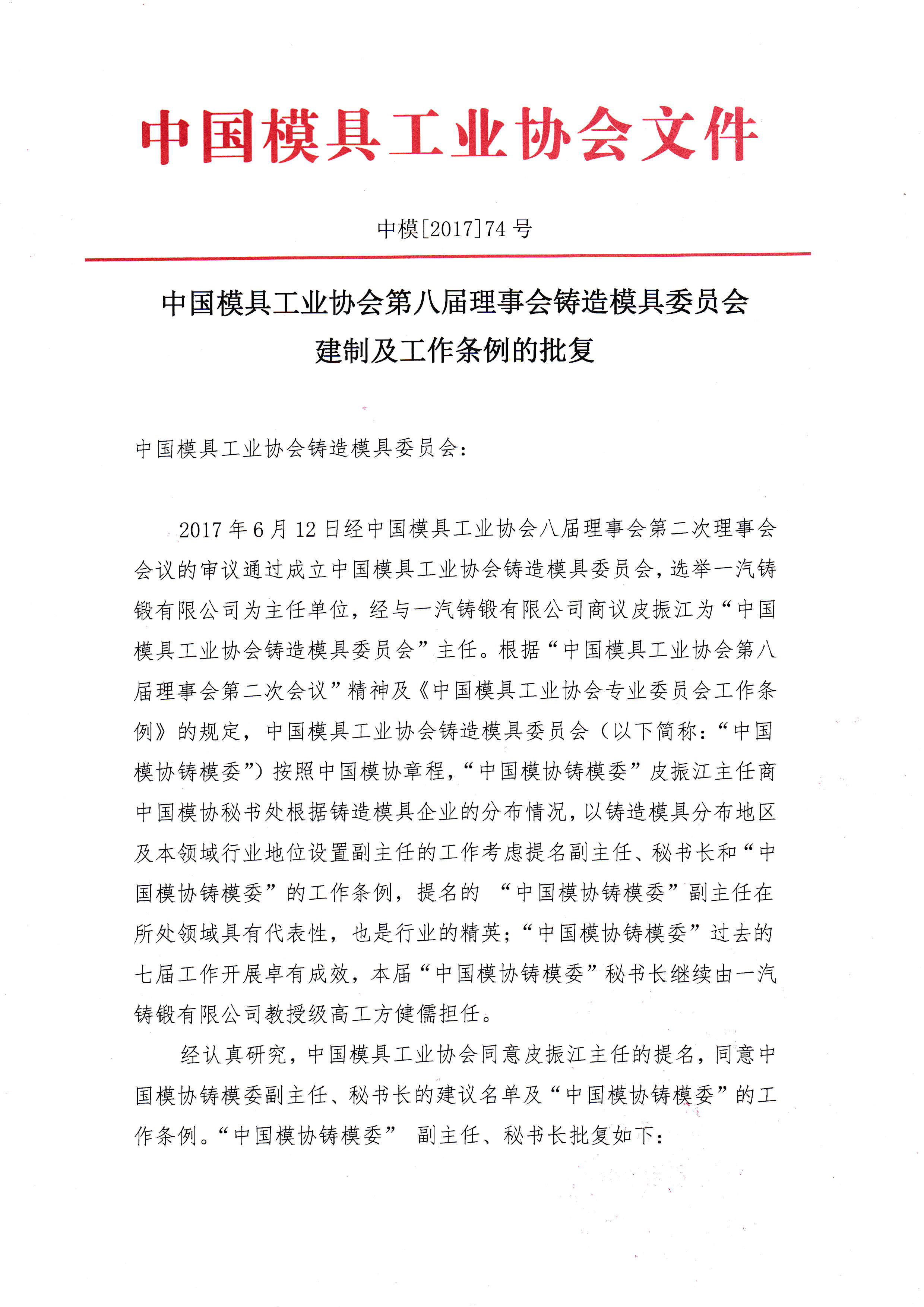 鑄造模具委員會(huì)建制及工作條例的批復(fù)
