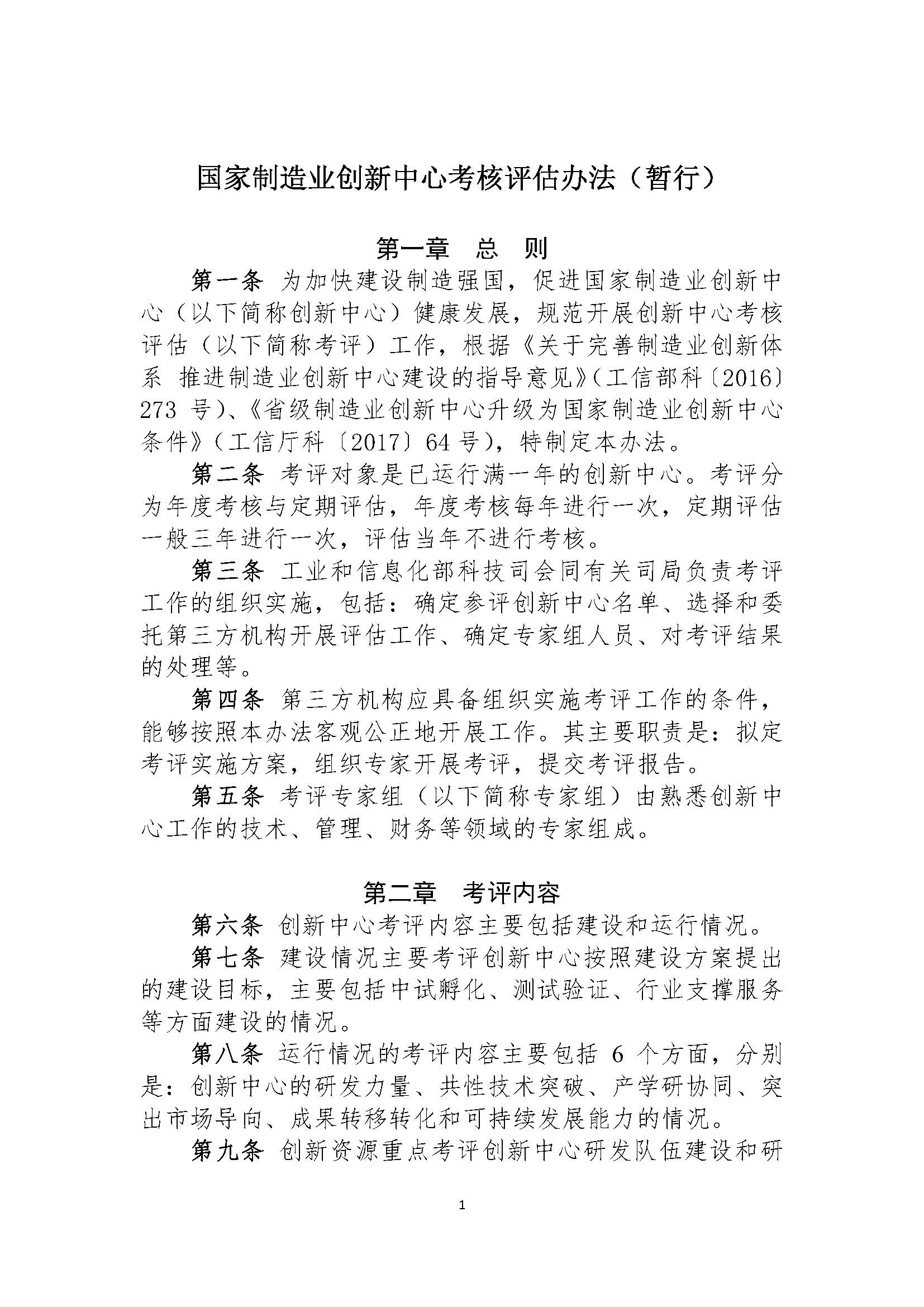 工業(yè)和信息化部辦公廳關(guān)于印發(fā)《國家制造業(yè)創(chuàng)新中心考核評估辦法(暫行)》的通知 |