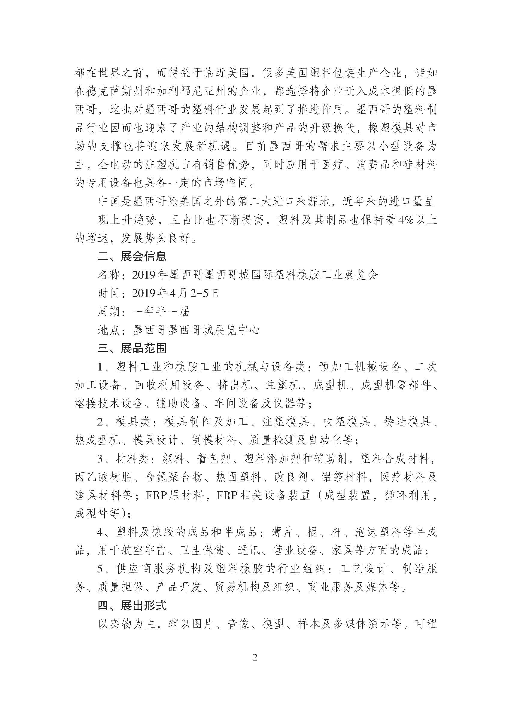 關(guān)于邀請(qǐng)參加2019 年墨西哥墨西哥城國(guó)際塑料橡膠工業(yè)展覽會(huì)的通知