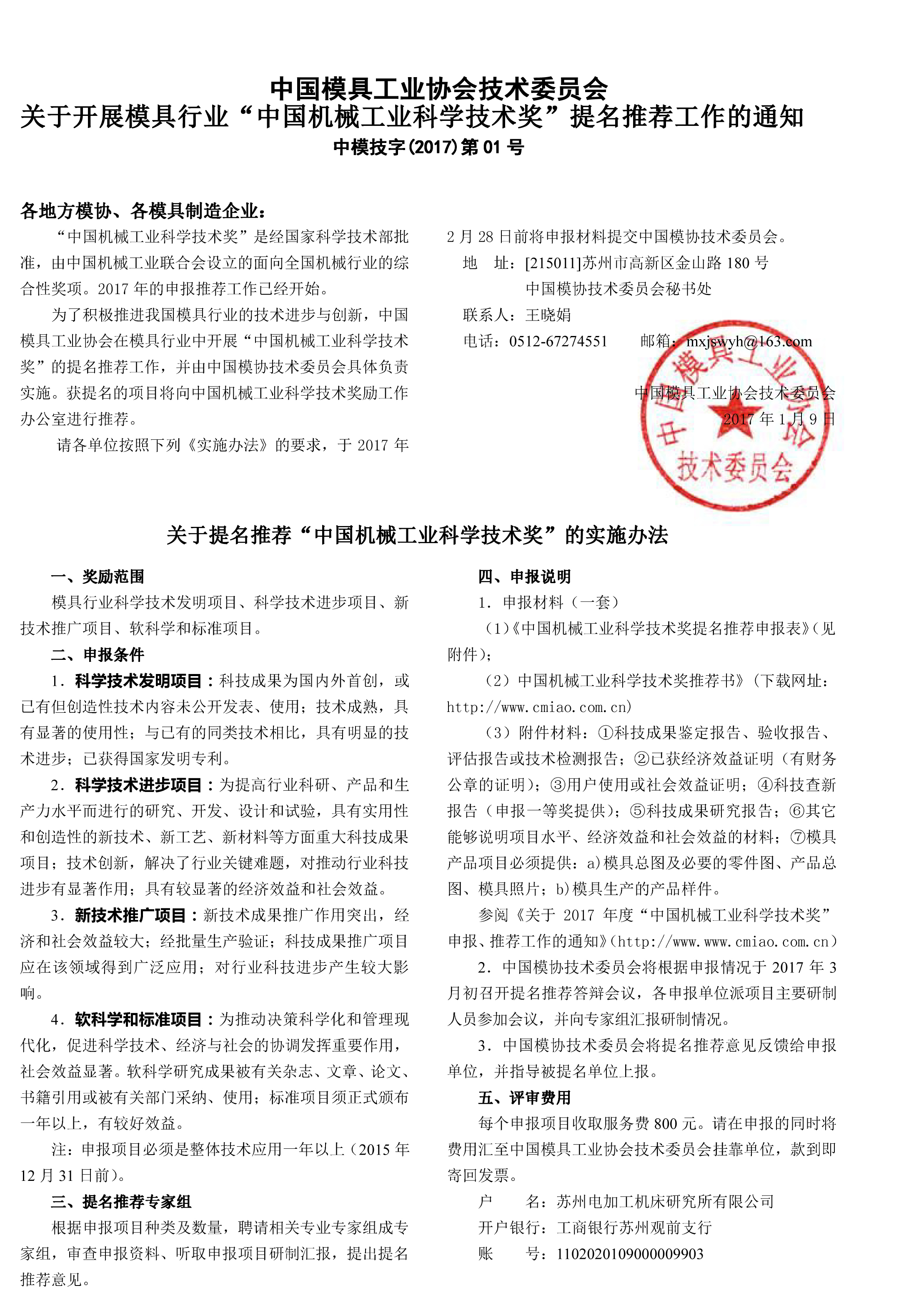 參閱《關(guān)于2017年度“中國機械工業(yè)科學(xué)技術(shù)獎”申報、推薦工作的通知》(http://www.cmiao.com.cn)