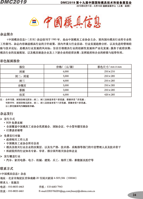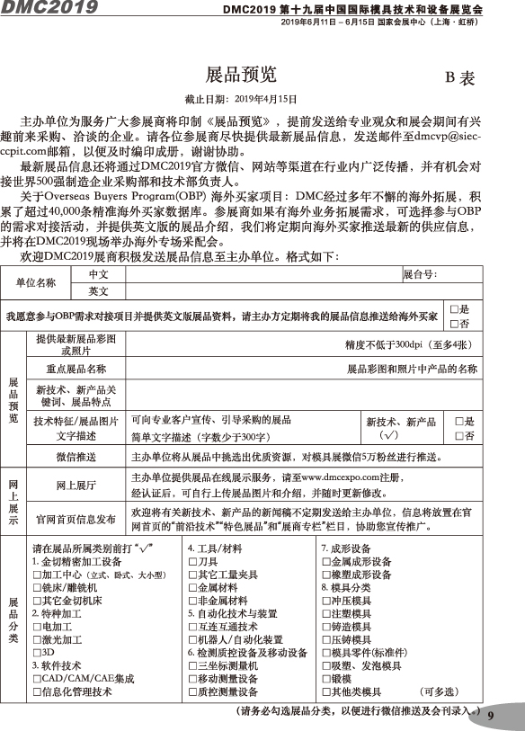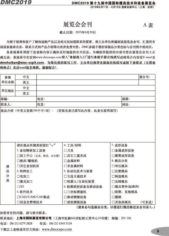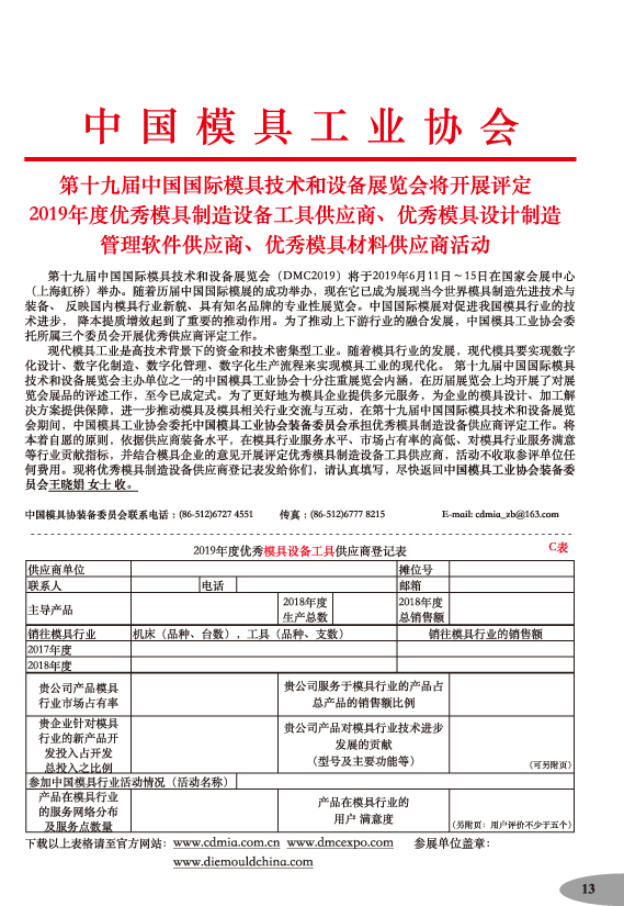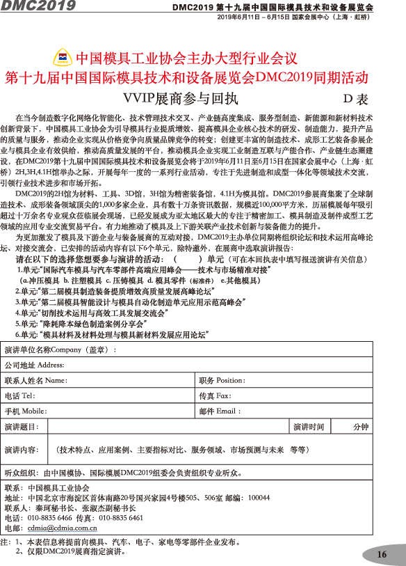 第十九屆中國國際模具技術(shù)和設(shè)備展覽會(huì)參展手冊(cè)