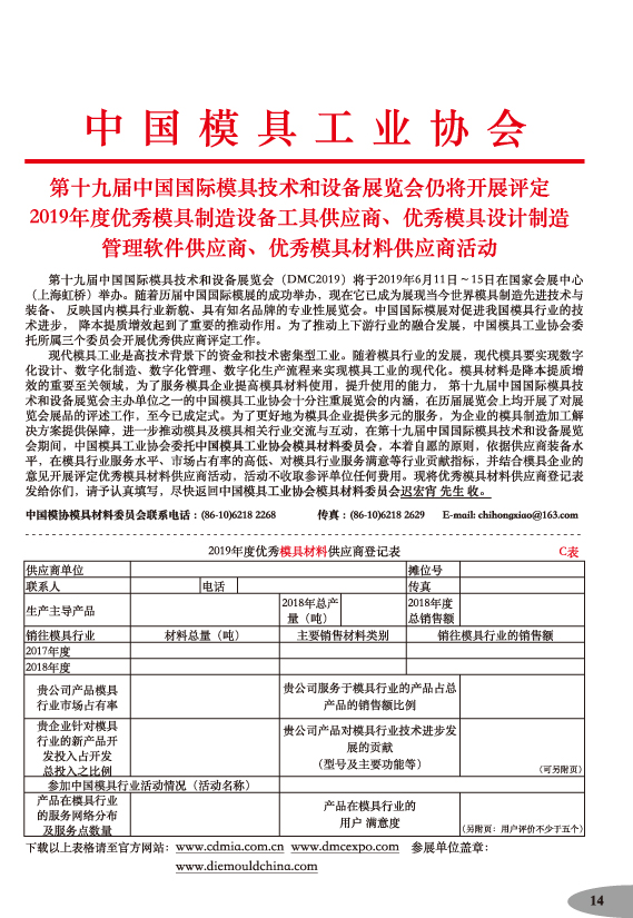 中國模具工業(yè)協(xié)會(huì)主辦唯一官方網(wǎng)站