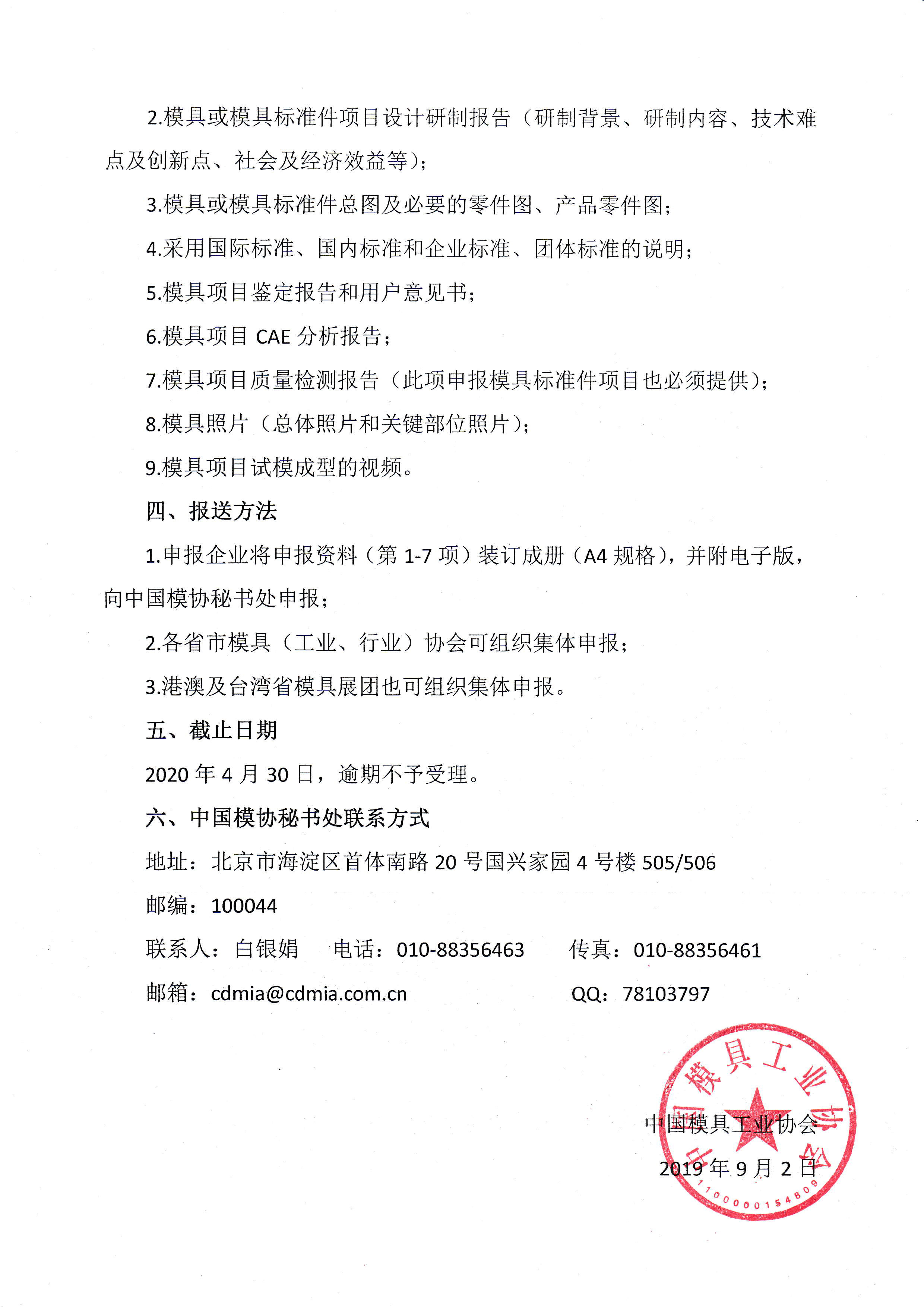 第二十屆中國國際模具技術和設備展覽會(DMC2020)參展模具及模具標準件項目“精模獎”評定通知