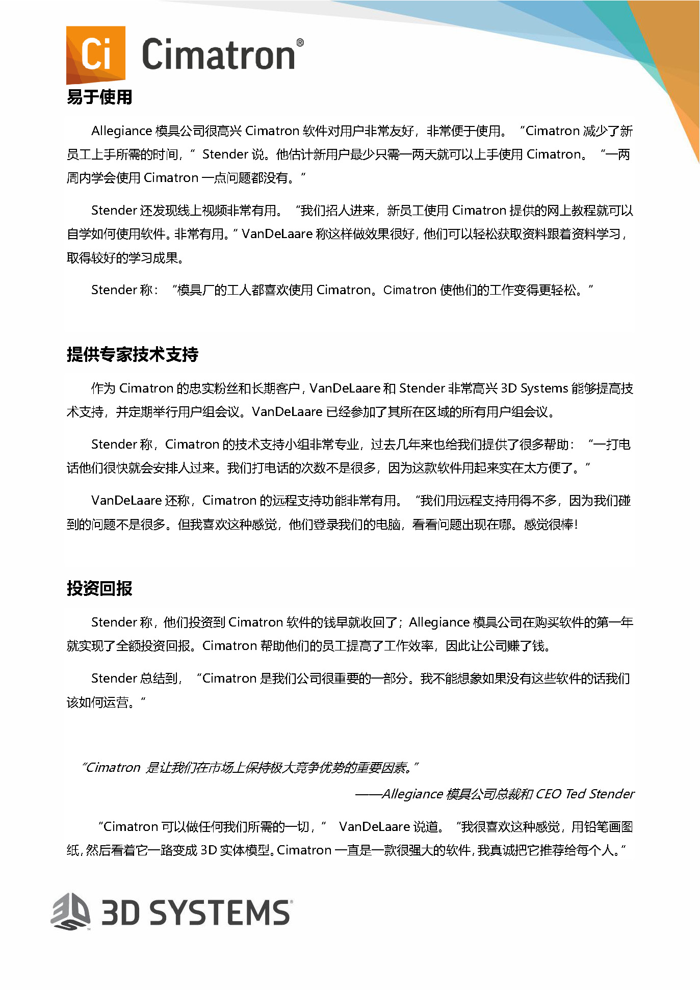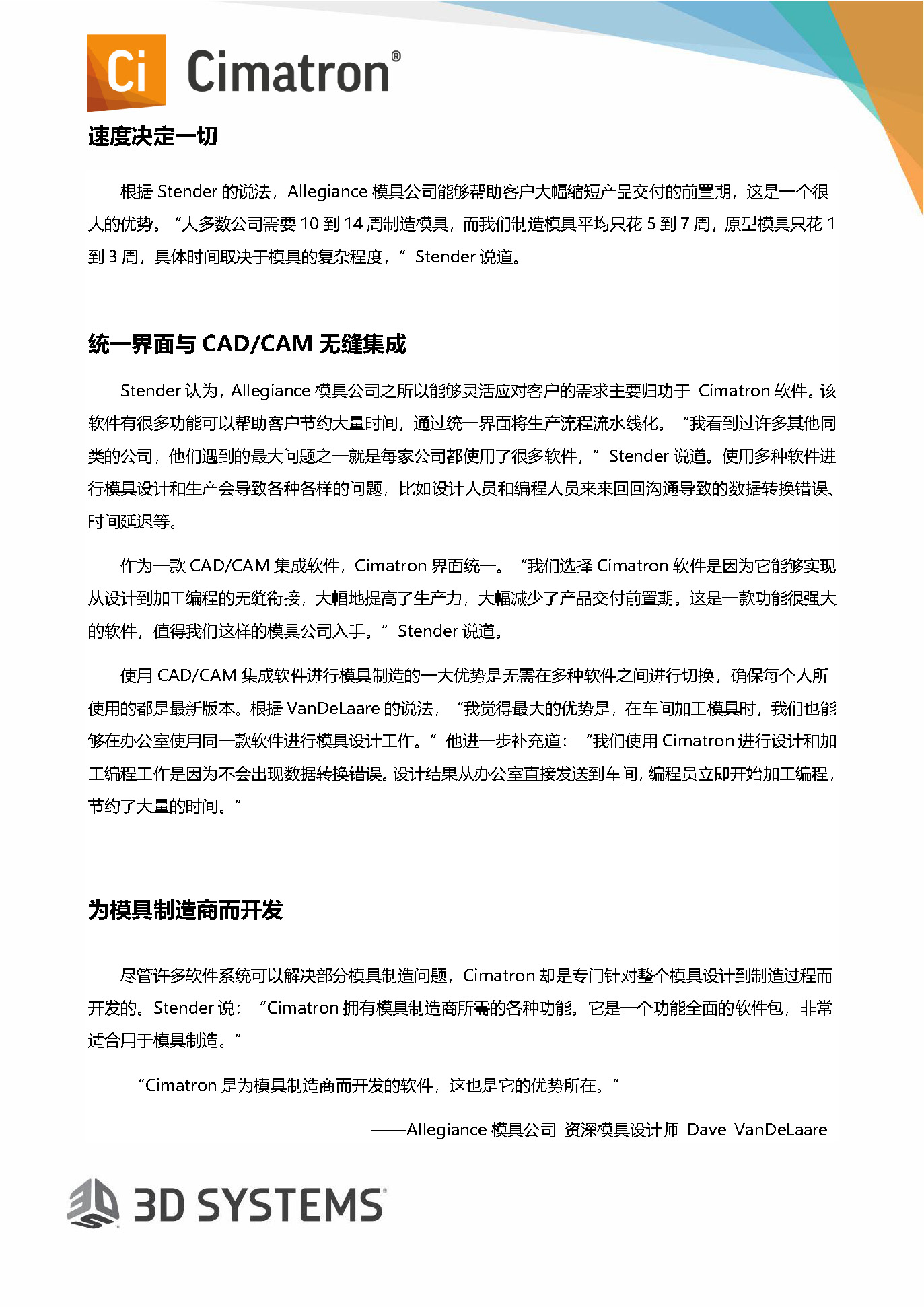 Allegiance模具公司使用Cimatron將高質量注塑模具交付時間縮短50%