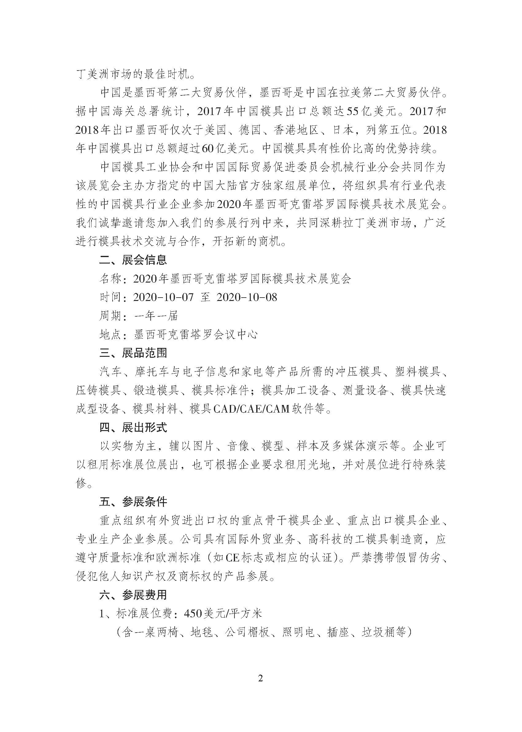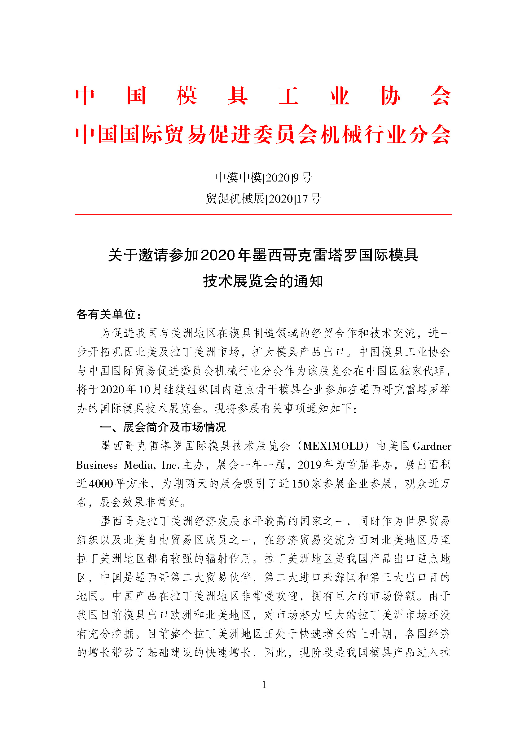 關于邀請參加2020年墨西哥克雷塔羅國際模具技術展覽會的通知