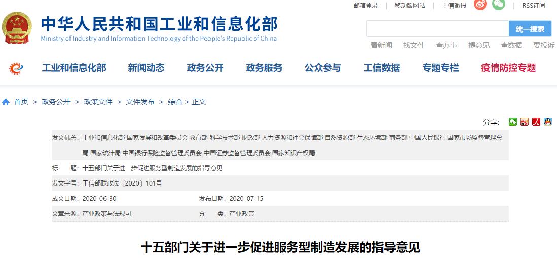關(guān)于進(jìn)一步促進(jìn)服務(wù)型制造發(fā)展的指導(dǎo)意見