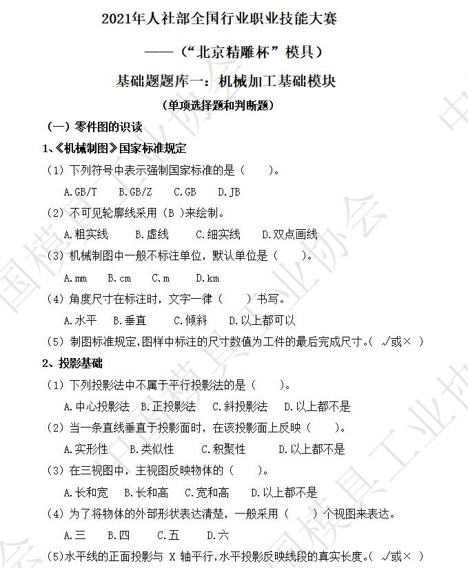 ——(“北京精雕杯”模具)理論題庫