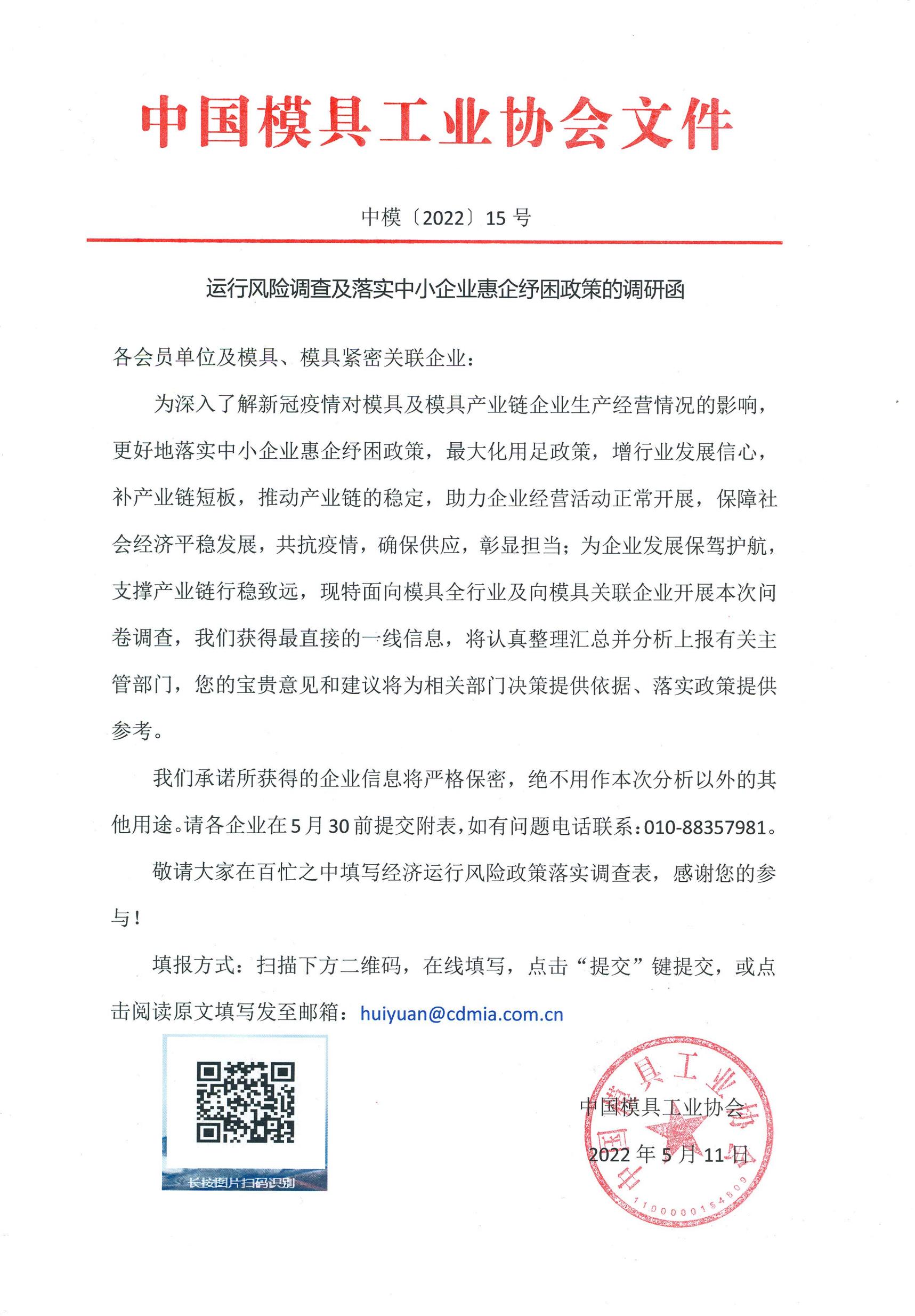 運行風險調查及落實中小企業惠企紓困政策的調研函