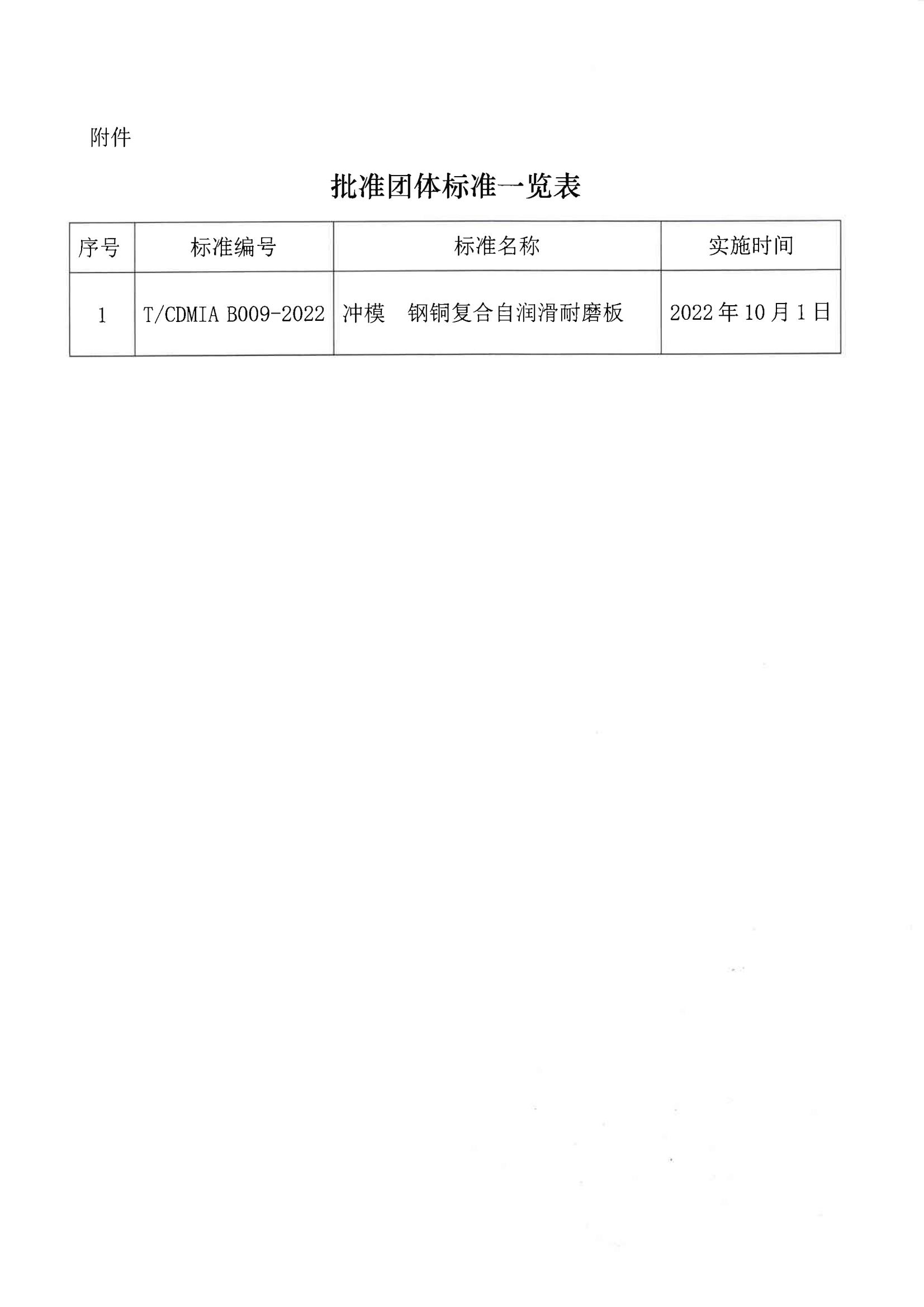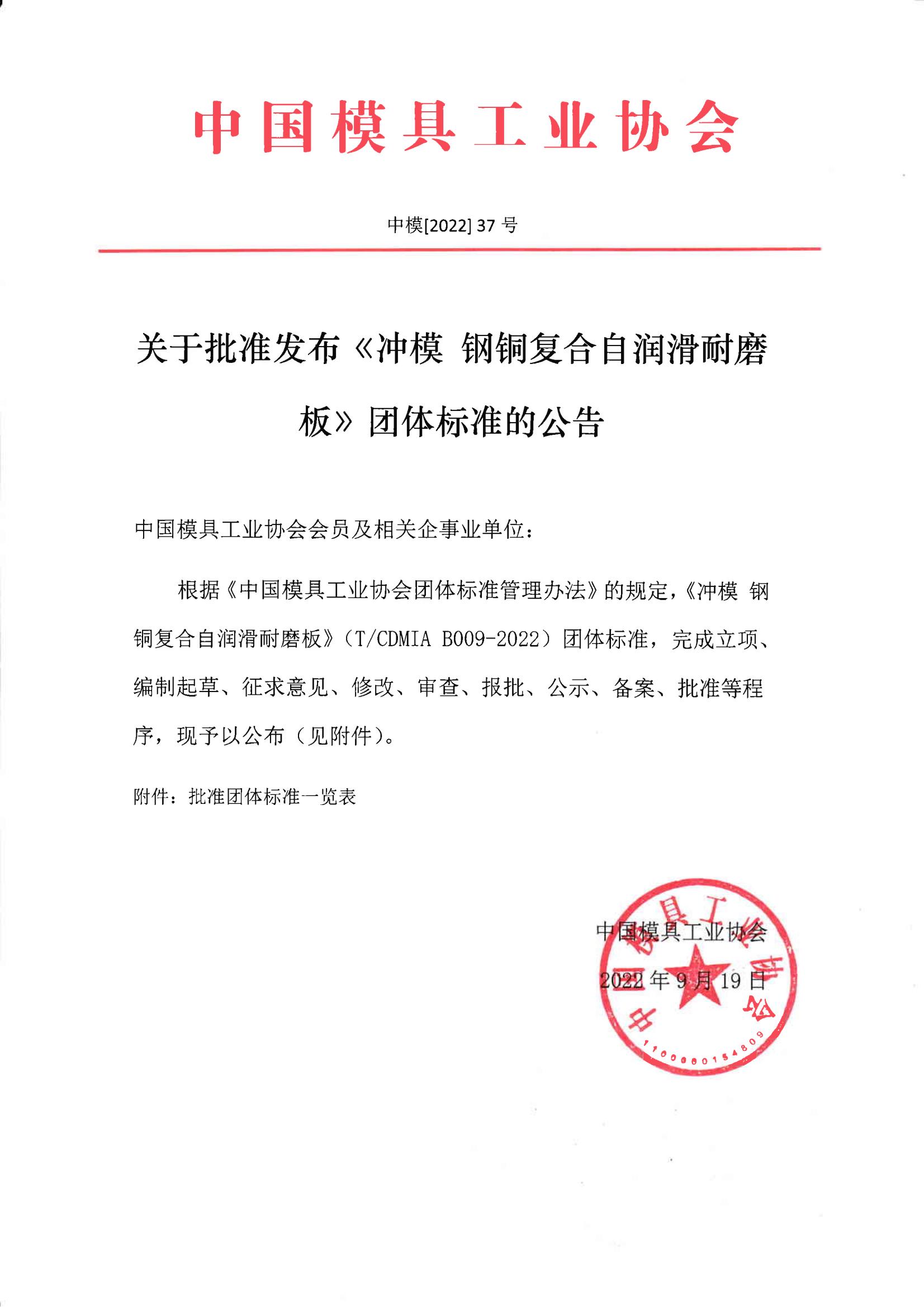 關于批準發布《沖模 鋼銅復合自潤滑耐磨板》團體標準的公告