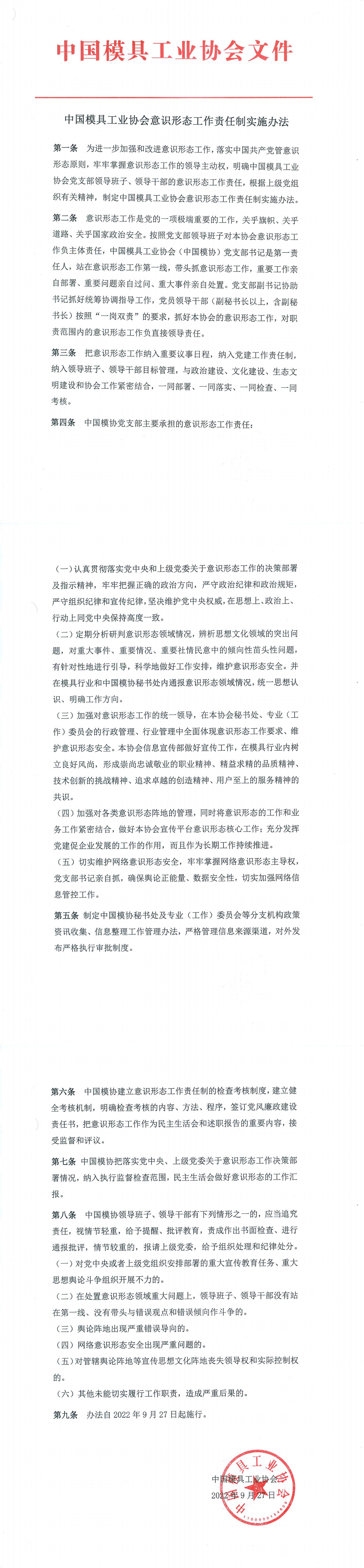 中國模具工業(yè)協(xié)會意識形態(tài)工作責(zé)任制實(shí)施辦法
