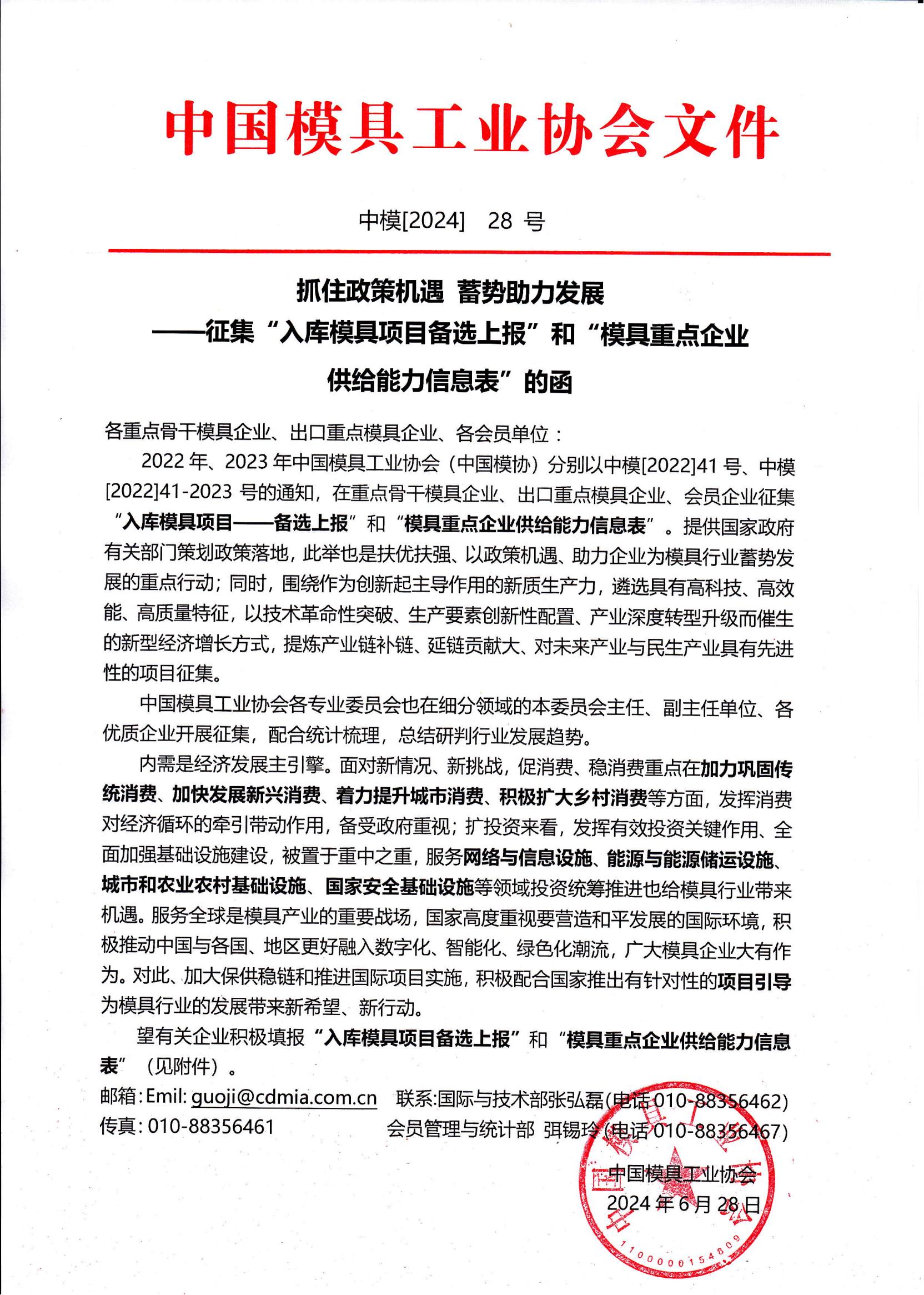 抓住政策機(jī)遇 蓄勢(shì)助力發(fā)展——征集“入庫模具項(xiàng)目備選上報(bào)”和“模具重點(diǎn)企業(yè)供給能力信息表”的函